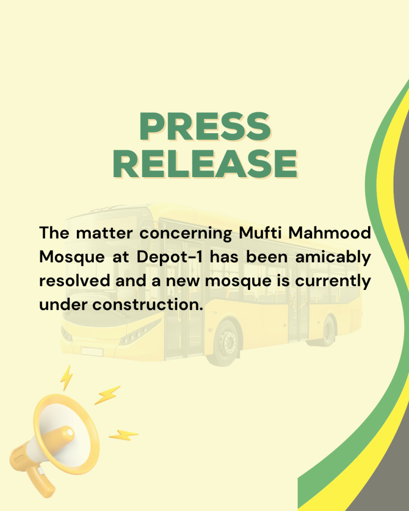 The matter concerning Mufti Mahmood Mosque at Depot-1 has been amicably resolved and a new mosque is currently under construction.