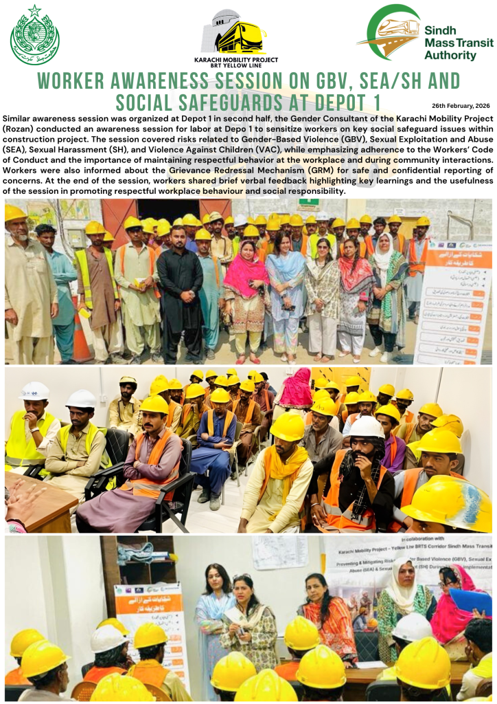 By prioritizing the Workersβ Code of Conduct and the Grievance Redressal Mechanism (GRM), we are ensuring a professional and secure environment for everyone involved in the Karachi Mobility Project. ποΈβ¨